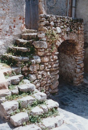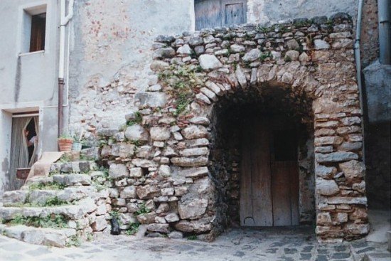 Particolare antico portare in pietra locale particolare abitazione del centro storico, da notare come si riutilizzavano le pietre una volta appartenenti a chiese ora inesistenti